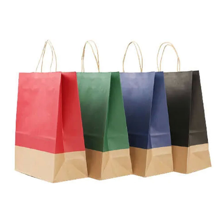 சியாங்கியாங்கில் தொழிற்சாலை உருவாக்கிய வண்ண மறுசுழற்சி செய்யப்பட்ட கிராஃப்ட் பேப்பர் ஷாப்பிங் பைகள் ஷாப்பிங் மற்றும் பரிசு மடக்குதலுக்கான முறுக்கப்பட்ட காகித கைப்பிடிகளுடன். எங்கள் தயாரிப்புகள் உங்கள் பேக்கேஜிங்கிற்கு கூடுதல் முறையீட்டைச் சேர்க்க பல்வேறு வண்ணங்கள் மற்றும் தனிப்பயனாக்குதல் விருப்பங்களில் கிடைக்கின்றன.
